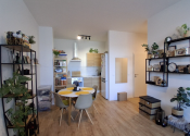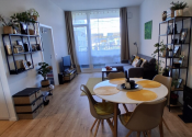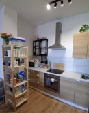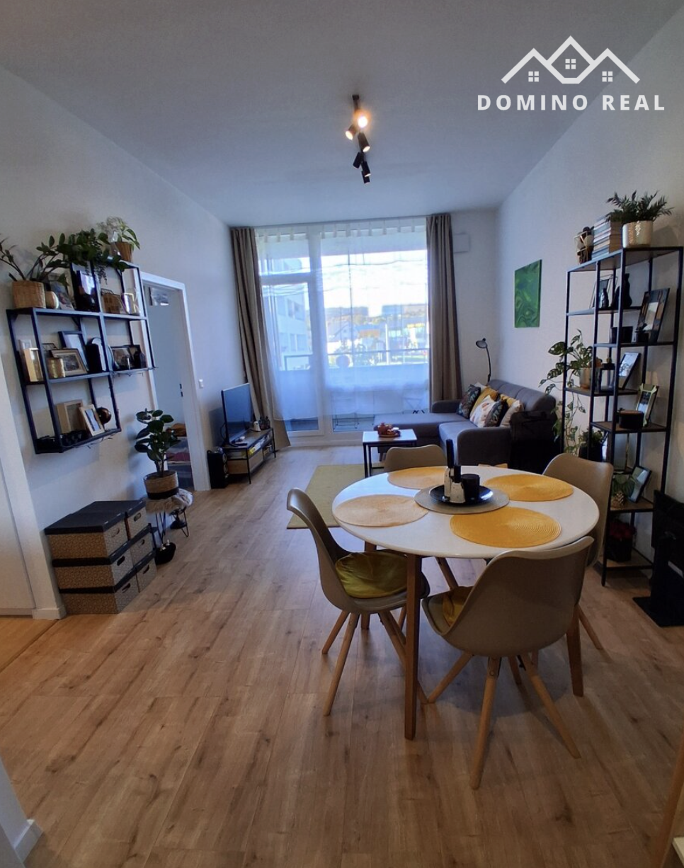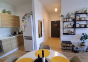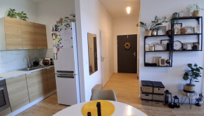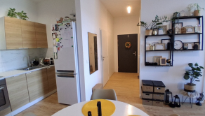 Vybavenie bytu: Kuchynská linka, Chladnička s mrazničkou, Rúra na pečenie, Mikrovlnná rúra, Indukčná varná doska, Umývačka riadu, Jedálenský stôl so stoličkami, Sedačka, TV + optický internet, Manželská posteľ, Úložné systémy.