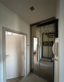 byt je zariadený s množstvom úložného priestoru v kvalitných vstavaných skriniach