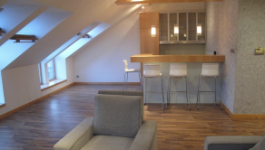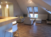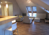 Ponúkame na prenájom krásny slnečný priestranný podkrovný 2-izbový byt s rozlohou 86 m2 na Vajanského nábreží v starom meste s pozitívnou energiou.