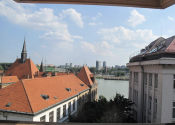 Očarí vás veľký otvorený priestor s nádhernými výhľadmi. Obrovskou výhodou bytu je aj to, že priamo zo sedačky môžete pozorovať ruch mesta. Poskytne sa vám výhľad na Dunaj, most Apollo, prvý slovenský mrakodrap.