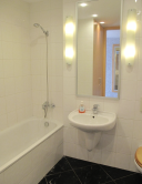 Byt má dlhú vstupnú chodbu, ktorá vedie do obývačky spojenej s kuchyňou. WC sa nachádza v kúpeľni, spálňa má samostatný vchod.