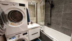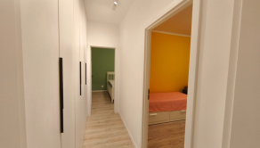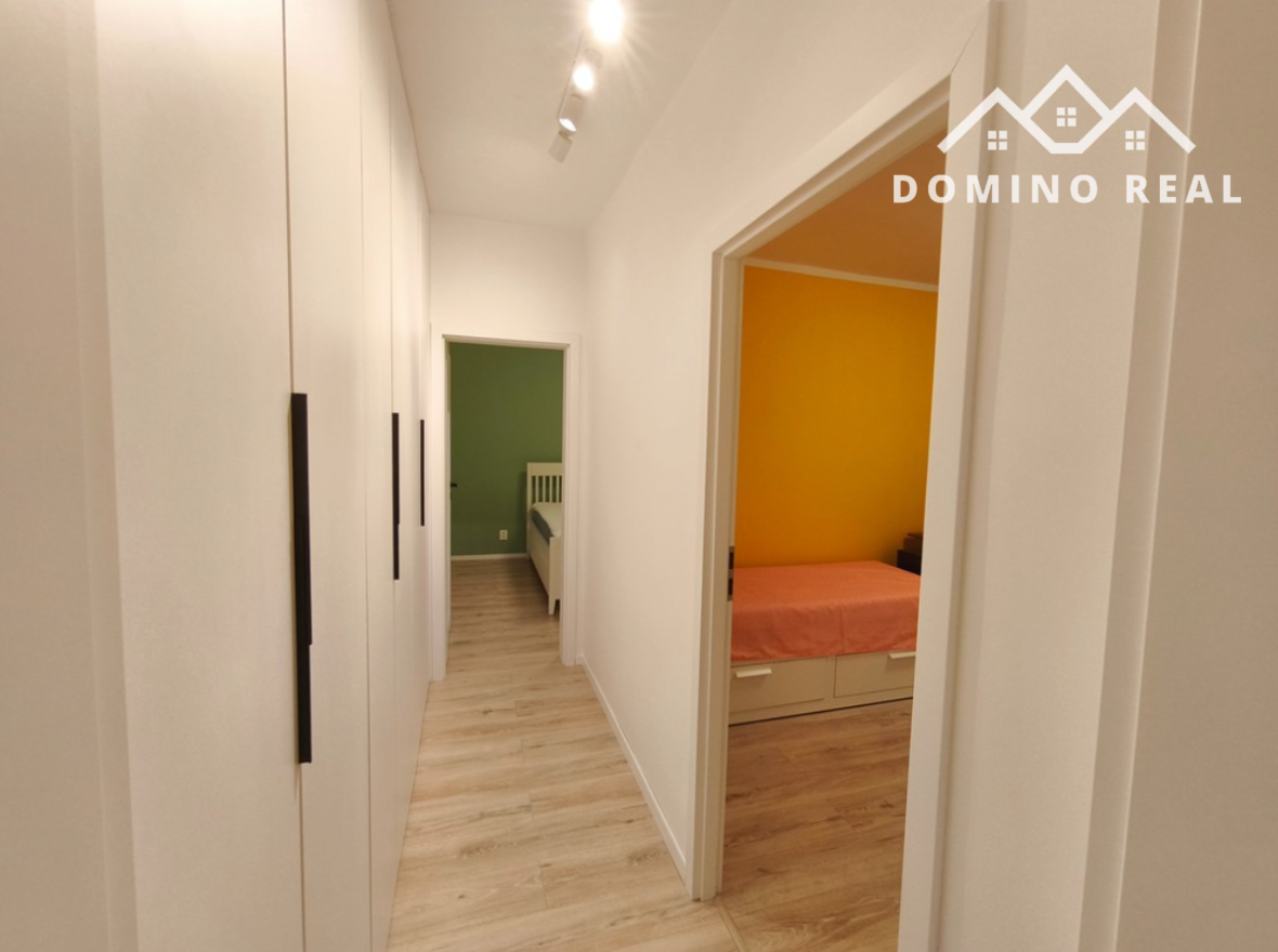 Byt sa nachádza na 7/7 poschodí s výťahom. Obývačka plus 2 spálne sú orientované do tichej časti, dospozícia ponúka samostatnú kuchyňu, kúpeľňu s vaňou, samostatnú toaletu. V kuchyni je umývačka riadu, elektrická rúra, indukčná doska, mikrovlnka, chladnička s mrazničkou, ryžovar. V kúpeľni je práčka aj sušička, v spálni a na oboch chodbách je dostatok úložných priestorov (vstavané skrine) klimatizácia v obývačke, vnútorné žalúzie a sieťky na oknách