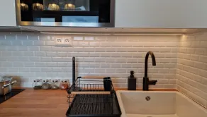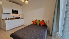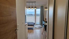 Plne zariadený, nedávno dokončený k okamžitému nasťahovaniu. Dostatok úložného priestoru pozostávajúceho z priestrannej vstavanej skrine. Kuchyňa obsahuje chladničku, mikrovlnku a indukciu. V kúpeľni sa nachádza práčka, sprchový kút a WC. Samozrejmosťou je posteľ, stôl, stoličky a skrinka v obývačke. Priestranný balkón s výhľadom na okolitú prírodu.