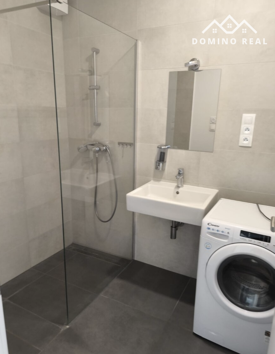 • kúpeľňa s priestranným sprchovým kútom a práčkou