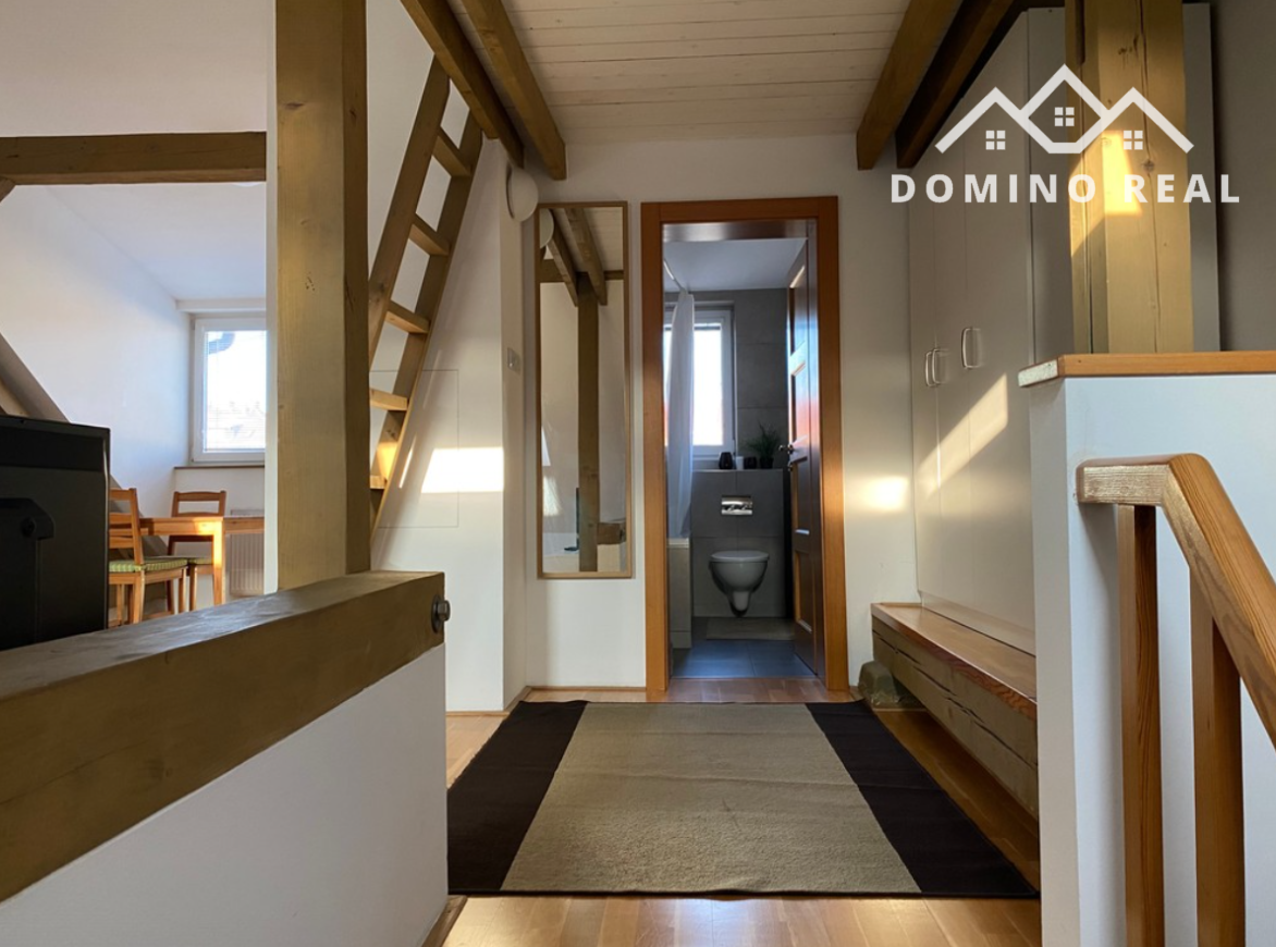 Ponúkame Vám na prenájom 1 izbovy byt v rod.dome oproti VIVO v tichej štvrti so samostatným vstupom. Nachádza sa na 2. poschodí ( podkrovie ).