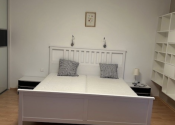 Byt má dve samostatné spálne: priestrannú hlavnú spálňu s manželskou posteľou, pracovným stolom a veľkou vstavanou skriňou, a menšiu izbu zariadenú ako detskú alebo hosťovskú, vybavenú posteľou, pracovným stolom a komodov.