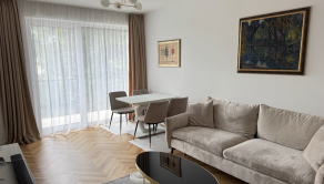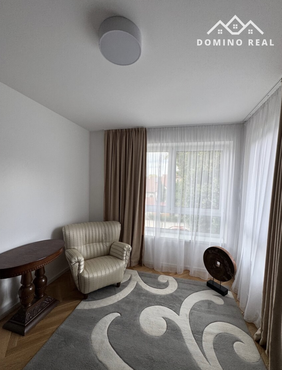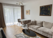 V byte sú drevené parkety, vstavané skrine, kuchyňa s umývačkou, práčka so sušičkou. V byte je vzduchotechnika a klima. K bytu je kopka a parkovacie miesto. Fajčenie a zvieratá v byte zakázané .